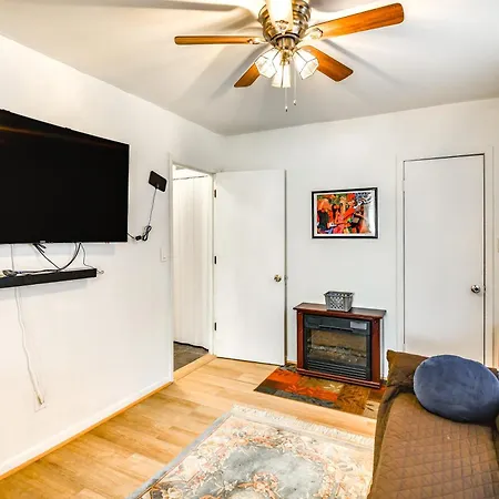 Featuring a writing table, 1 Mi To Dtwn Remote Work-Friendly Apt In Hampton! Apartment has Wi-Fi and a multi-channel TV, an iron and ironing board, and amenities such as an air conditioner. A bathroom has a separate toilet and a shower, as well as a dryer and bath sheets.
